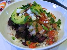 | Mexican Rice Bowl With Black Beans & Greens Recipe - Food.com queso fresco, chard, feta cheese, black beans, canola oil, coriander leaf, avocado, onion, garlic, salt, water A wonderful and healthy dish served up in a big bowl, with Mexican flavors. This recipe came from an on-line cooking class I took and while this is veggie based, I have added ground pork, or spicy sau...