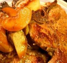 | Grilled Pork Chops W/Apple-Cranberry Glaze Recipe - Food.com cranberry sauce, apple sauce, thyme, pepper, dried garlic, bay leaf, allspice, mustard, salt, maple syrup, sugar, apple cider, water A yummy main dish that your family will rave over! Serving Size: 1 (246) g Servings Per Recipe: 6 AMT. PER SERVING % DAILY VALUE Calories: 135.2 Calories from Fat 2 g 2 % Total Fat 0.3 g 0 % Sat...