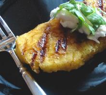 | Grilled pineapple recipe - BBC Food dried ginger, pineapple, lime, maple syrup, dark rum, creme freche, yogurt (plain) Worth keeping the barbecue hot for! Makes a delicious change from marshmallows. Heat a barbecue or griddle pan to a high heat. Place the pineapple in a large bowl. Add the lime juice, maple syrup, g...
