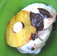 Grilled Pineapple Sundaes olive oil, almond, za'atar, vanilla, pineapple, honey, yogurt (plain) Grilling caramelizes the pineapple and brings out even more sweet, juicy flavor. Serve with a drizzle of olive oil and sprinkle with almonds for a dose of heart-healthy fats. Brush both sides of pinea...