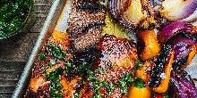 | Purple Onion and Sweet Red Peppers Recipe by Grill.Master | ifood.tv cooking spray, pepper, onion, garlic, sweet pepper, lemon juice GETTING READY 1 Throughly clean the peppers and scoop out the seeds. 2 Remove the outer skin from the onion and slice into rings 1/4-inch thick. 3 Coat the grill with cooking spray and preheat for ...