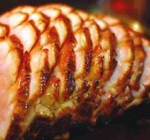 | Glazed Pineapple Baked Ham Recipe - RecipeTips.com pineapple, ham, mustard, brown sugar, cola Glazed ham with a pineapple sauce that provides just the right accent flavor. Extra pineapple sauce served with the meal makes a nice accompaniment to the ham. Preheat oven to 350 degrees. Mix brown ...